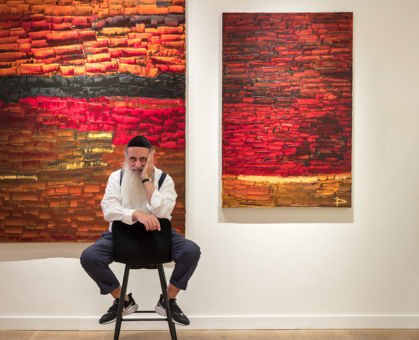 French painter Pierre Soulages was particularly enthralled by Guez’s work, stating: “Overall, from the depths of your painting emanated a mystical ambience.” The aesthetic foundation of Guez’s work suggests a path to an unknowable elsewhere. Whether intentional or not, his recurring angular strokes also evoke ocean tides, a place between lands experiencing moments of turbulence followed by moments of tranquility. This metaphorically alludes to the artist's personal journey and experiences: Born in Tunis, immigrating to Paris as a child, living in Los Angeles during his 20s and 30s, and today residing in Jerusalem. Guez’s artwork has since been exhibited in Venice during the Biennale, where Italian art critic Paolo Levi declared Guez a “master of vision” whose work “reveals itself to every inquiry of the observer as an arcane message.” The artist’s compositions bear witness to the evolution of time and visually symbolize compilations of life’s intricacies. His creative practice speaks to both the internal confrontations we endure on a personal level and the existential concepts that define us on a universal level.